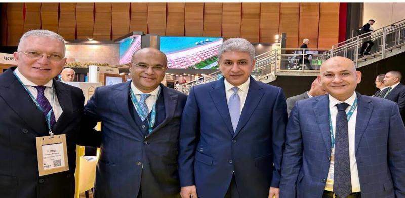 بحضور معالي الوزير شريف فتحي وزير السياحة والآثار مع كلا من السيد حسين شكري المدير الإقليمي لفنادق ومنتجعات سفير مصر وأحمد سليط رئيس قطاع تطوير الأعمال وجلال فرج رئيس قطاع الإيرادات والتوزيع بشركة سفير الدولية لإدارة الفنادق والمنتجعات في أثناء فاعليات افتتاح جناح مصر بالمعرض.