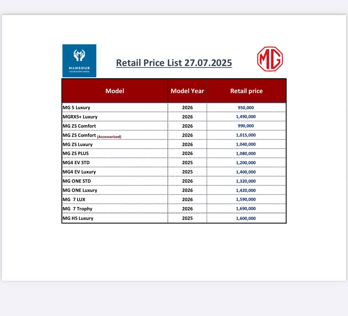 تخفيض يصل لـ75 ألف وطرح فئة جديدة، «MG» تعدل القائمة السعرية لسياراتها