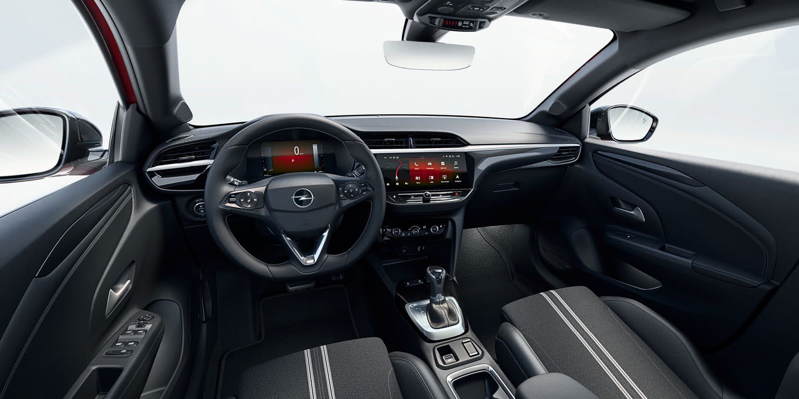 تحتوي أوبل كورسا الجديدة على تكييف اوتوماتيكي، مع وجود فتحات هواء خلفية، وتتميز أيضا بعجلة قيادة تلسكوبية متعددة الوسائط، من الجلد الطبيعي، ونظام لتمييز الصوت والأوامر الصوتية، ودواسات للقيادة من الالومنيوم، وخاصة قفل الابواب الخلفي الخاص بالأطفال، وبلوتوث ومدخل US، وحامل أكواب أمامي، و 3 مساند رأس خلفية، وشاشة مقاس 10 بوصة تعمل باللمس، وأخرى للسائق مقاس 7 بوصة، وكلاهما تدعم برامج التشغيل Apple CarPlay وAndroid Auto، بـ 6 سماعات، و Screen Mirroring، WIFI